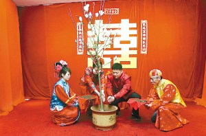 “有請新郎,上前揭開美麗新娘的紅蓋頭……”昨天中午,九龍坡區巴國城某酒樓,隨著主持人的引導,一場傳統中式婚禮正式開始。新郎曾晰在親朋的見證下,上前迎娶穿著鳳冠霞帔的新娘,賓客們報以熱烈掌聲。
