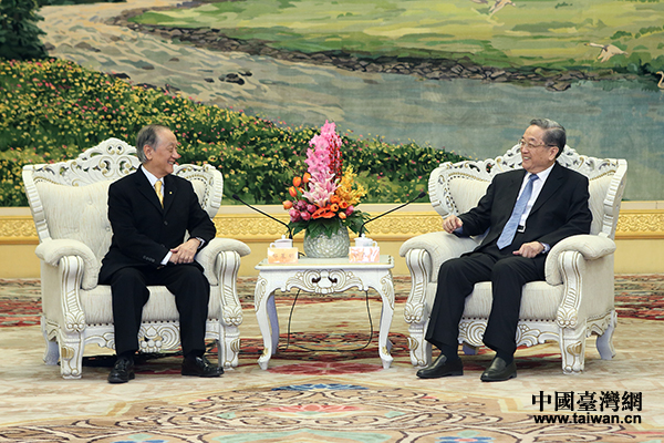 12月11日,全國政協主席俞正聲在北京人民大會堂會見新黨主席郁慕明率領的新黨大陸訪問團。