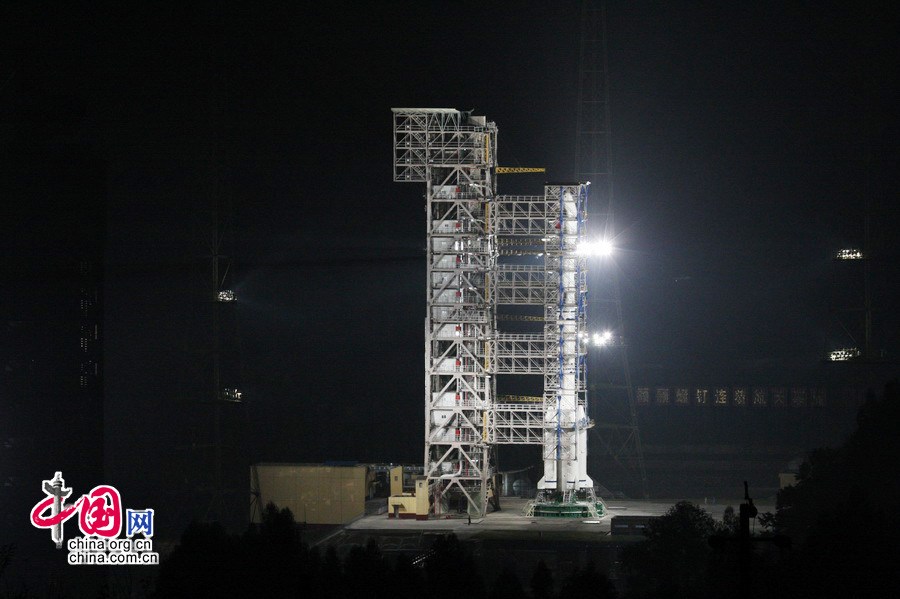 2013年12月1日,西昌衛(wèi)星發(fā)射中心發(fā)射塔架:夜幕下的西昌衛(wèi)星發(fā)射中心發(fā)射塔架“嫦娥三號”探測器即將在此升空。中國網(wǎng)記者 鄭亮 攝影