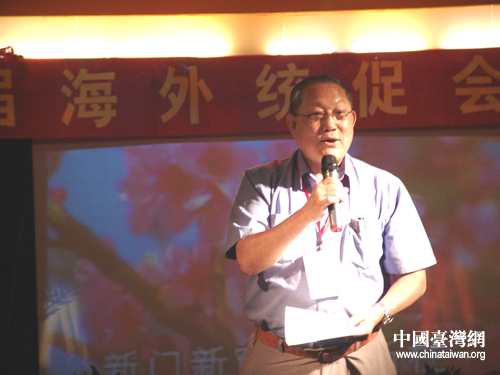 洪光良會長在聯歡會上朗誦了自己在分組交流后即興所做的組詩《同船之歌》。“嘉陵長江匯成流 ,兩岸分隔我心憂,世紀之星能載重,難載分離骨肉愁……地緣血緣緣不盡,和平統一憶萬秋。”“抽刀斷水水更流,兩岸一家留更留,炎黃子孫遍天下,百尺竿頭上層樓……”他情深意切的朗誦感染著臺下的眾多會長。