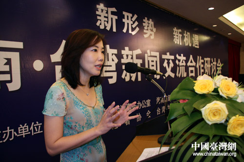 臺灣知名評論員尹乃菁通過央視節目而被大陸觀眾所熟知,對于兩岸新聞媒體互設常設機構的呼聲感同身受。她認為:解決兩岸新聞交流不對等的問題,首先要解決媒體常駐問題,唯有如此,記者才能更好地積累人脈、熟悉當地情況、深入構思選題,提高新聞質量。她還建議:在兩岸電視節目沒有在對岸全面落地前,共同合拍電視劇以及合作綜藝節目、談話性節目或可成為兩岸媒體人積極推動的方向,運用電視劇在情感影響上的優勢,明星、名嘴效應,密切兩岸民眾的了解與共鳴。