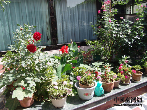 院落中栽種的花卉植物
