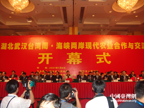 2007年7月6日-11日,第四屆湖北武漢臺灣周在武漢舉行。此次活動以“海峽兩岸農業交流與合作”為主題,吸引了兩岸400余嘉賓參與,會上達成的漢臺兩地農業合作項目17個計15億元。(攝影:陳寧)