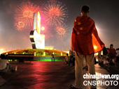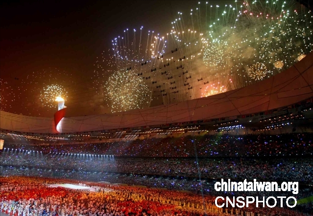 北京天安門廣場燃放煙花慶祝奧運會閉幕
