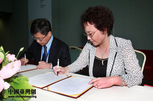 簽約儀式由中國(guó)互聯(lián)網(wǎng)協(xié)會(huì)秘書(shū)長(zhǎng)助理孫永革主持,在兩岸嘉賓的共同見(jiàn)證下,中國(guó)臺(tái)灣網(wǎng)總經(jīng)理兼總編輯劉曉輝與臺(tái)灣中華聯(lián)合集團(tuán)執(zhí)行長(zhǎng)施義忠在意向書(shū)上簽字。雙方約定在共同組織網(wǎng)絡(luò)內(nèi)容、建立合作聯(lián)系機(jī)制、促進(jìn)人員技術(shù)交流、共同推展主題報(bào)道等方面進(jìn)行深度合作。這也是中國(guó)臺(tái)灣網(wǎng)繼上屆論壇與臺(tái)灣時(shí)報(bào)資訊公司牽手合作后,與臺(tái)灣媒體合作的又一碩果。