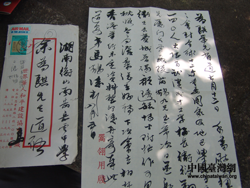 馬鶴凌親筆寫給余為騏校長的信。(攝影 董潔)