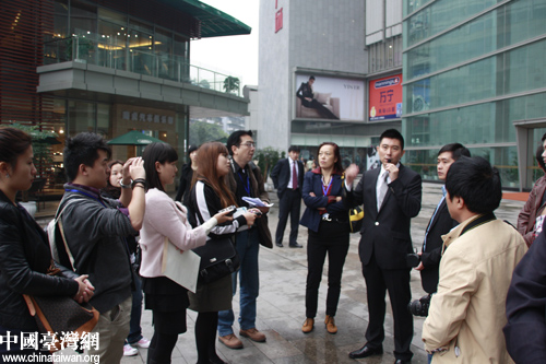 重慶日月光廣場項(xiàng)目負(fù)責(zé)人為兩岸媒體記者介紹情況(中國臺(tái)灣網(wǎng) 程軼文攝)