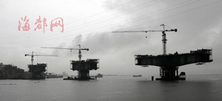 福廈鐵路烏龍江特大橋橋墩已基本建成