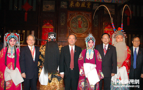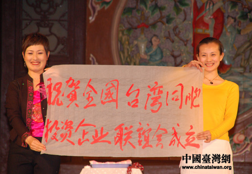 晚會結(jié)束后,張漢文會長(右三)等臺企聯(lián)負(fù)責(zé)人與演員合影留念。(圖片攝影:田云鵬) |