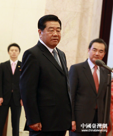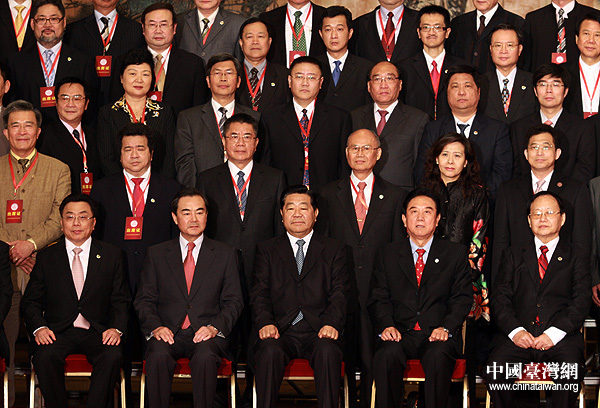 賈慶林、王毅、陳云林等同全國臺企聯第二屆會員代表合影留念。(中國臺灣網 鐘寶華 攝)