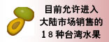 臺(tái)灣省農(nóng)會(huì)理事長(zhǎng)古源俊介紹說(shuō),大陸已同意臺(tái)灣的十二種水果,四月間可以免稅、專案綠色通關(guān)方式進(jìn)入北京、上海市場(chǎng)銷售。 |