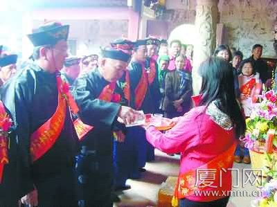 2月27日,臺灣臺南仁德鄉(xiāng)大甲慈濟(jì)宮近百名信眾來到廈門灌口深青深澤宮尋根進(jìn)香。臺南縣的許先生告訴我們:在臺灣保生大帝擁有非常廣泛的信眾,在當(dāng)?shù)兀篙厒兪来鄠魅实锣l(xiāng)的保生大帝信仰是從深青深澤宮分靈過去的,為了找到祖地,他們費(fèi)盡了周折,因此這次進(jìn)香,顯得非常隆重,提前幾個月就進(jìn)行了籌備。為了秉承中華民族的文化傳統(tǒng),他們特地為一些主要人員趕制了一整套的中國古代服裝,以配合祭典的氛圍,而且還特制了到祖國大陸進(jìn)香的專用旗幟。臺灣的蘇先生還告訴我們,由于這次進(jìn)香趕不上春節(jié)包機(jī),近百號的人只得到香港轉(zhuǎn)機(jī)。路途繞了一大圈,但這一點(diǎn)說明了大家對祖地的向往,同時(shí)也盼望能早日三通。