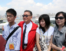 臺灣著名作家李敖今日攜全家繼續上海世博行。從上午九點半開始,李敖一行先后參觀了西班牙館、意大利館和沙特館,三座外國場館內獨具特色的展覽引發了李敖的興趣和好奇,使從未踏出過國門的李敖領略了異國風情和文化。在沙特館頂部的觀景臺,他以中國館為背景與全家合影留念。