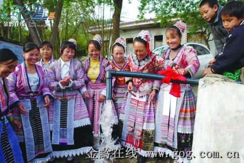 4月23日,貴陽市第一個抗旱應急水利工程——清鎮市流長苗族鄉磅寨應急供水工程在該鄉腰巖村通水,日供水1993立方米,解決了15個行政村2萬人飲水難。圖為苗族同胞開閘放水。