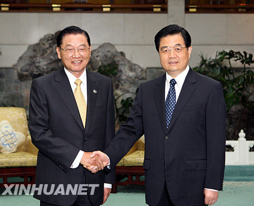 6月13日,中共中央總書記胡錦濤在北京釣魚臺國賓館會見臺灣海基會董事長江丙坤一行。 新華社記者劉衛兵攝