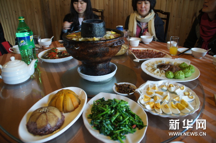 騰沖的美食同樣名不虛傳,您看這桌菜肯定是綠色有機食品,畢竟菜園就在家門口啊。楊藝華攝