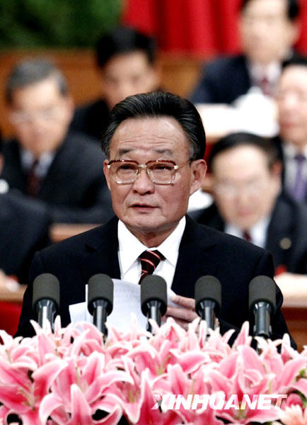 3月9日,十一屆全國(guó)人大三次會(huì)議在北京人民大會(huì)堂舉行第三次全體會(huì)議。全國(guó)人民代表大會(huì)常務(wù)委員會(huì)委員長(zhǎng)吳邦國(guó)作全國(guó)人民代表大會(huì)常務(wù)委員會(huì)工作報(bào)告。 新華社記者劉建生攝