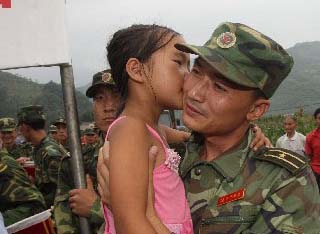透過閃爍的淚光--寫于第一批抗震救災部隊班師之際