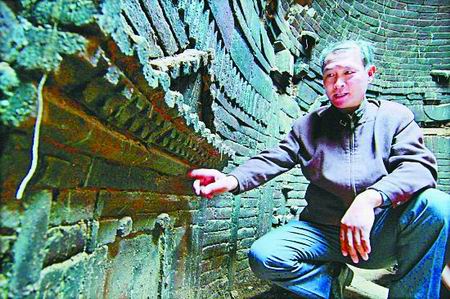 該座宋墓位于南水北調(diào)焦作段普濟路一處工地上。記者昨日到達現(xiàn)場時,南水北調(diào)焦作段施工人員正在幫助文物工作人員保護發(fā)掘現(xiàn)場。據(jù)焦作市文物工作隊古建專家趙德才介紹,圓形宋墓在焦作市所發(fā)掘的宋墓中比較罕見,這座宋墓上所雕刻的建筑結(jié)構(gòu)清晰可見,對研究宋代建筑有一定價值。