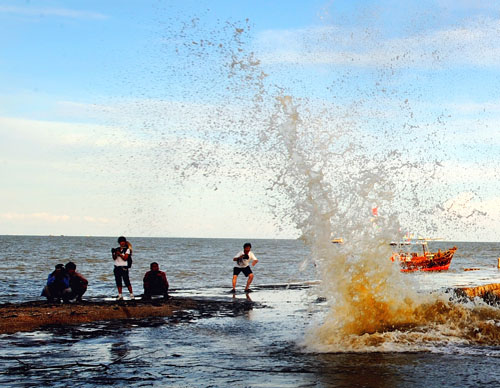 7月2-6日,廣西欽州市三娘灣舉辦一年一度的觀潮節(jié)。連日來(lái),天文大潮氣勢(shì)恢宏,巨浪撲擊巖石,濺起十余米高,場(chǎng)面十分壯觀.吸引了許多游客和攝影愛(ài)者前往觀光。據(jù)景區(qū)門(mén)票收入統(tǒng)計(jì),僅7月5日周六這一天,進(jìn)入景區(qū)觀潮的人數(shù)逾4萬(wàn)人次.