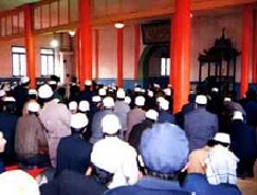 回族全民信奉伊斯蘭教,禁食豬肉 ,開齋節(jié)、古爾邦節(jié)、圣紀(jì)節(jié)是回族的三大節(jié)日。回族有特殊的喪葬習(xí)俗,人死說無常,或說“冒臺” 。 死人謂亡人。一般行土葬,即不用棺槨盛,先將亡人置于水溜子上,用湯瓶沖洗,再纏以“可蕃”(白布)放入埋臺,舉行殯禮, 拉往墳地“刺亥兒”,墳丘砌成長方形墩,回族喪葬倡導(dǎo)速葬、薄葬。回族男子喜愛戴白色或黑色無檐帽,熱天則身穿白褂,外套黑馬甲,黑白分明,干凈利落;婦女戴蓋頭,不使頭發(fā)、耳朵、頸脖外露,以顯本分莊重。根據(jù)個人年齡和婚姻狀況,蓋頭有顏色區(qū)分,一般老年人戴白蓋頭,中年人戴黑蓋頭,青年女子或未婚女孩則戴綠蓋頭(綠色是吉祥色)。在城市里,除少數(shù)老年人戴蓋頭外,多數(shù)回族婦女戴白帽,或各色頭巾。