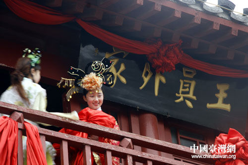 清明上河園內民俗表演,王員外招婿。(攝影 鐘寶華)